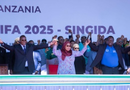 Rais wa Jamhuri ya Muungano wa Tanzania Mhe. Samia Suluhu Hassan, akiwa na Makamu wa Rais Mhe. Dkt. Philip Isdor Mpango, Waziri Mkuu Mhe. Kassim Majaliwa, Naibu Waziri Mkuu na Waziri wa Nishati Mhe. D...