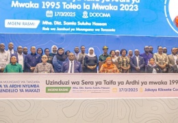 Mkurugenzi Mtendaji wa Halmashauri ya Wilaya ya Mpwapwa Bi Mwanahamisi H Ally akiwa kwenye hafla ya uzinduzi wa Sera ya Taifa ya Ardhi ya mwaka 1995 Toleo la 2023 na Mfumo wa e-Ar...