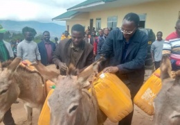 Mhe.George Simbachawene akisaidia kubeba maji kwa Punda wakati wa ziara yake ya kutembelea Jimboni kwake,katika harakati za uakmilishaji wa ujenzi wa Shule mpya ya Sekondari Kata ya Lufu Julai 17,2...